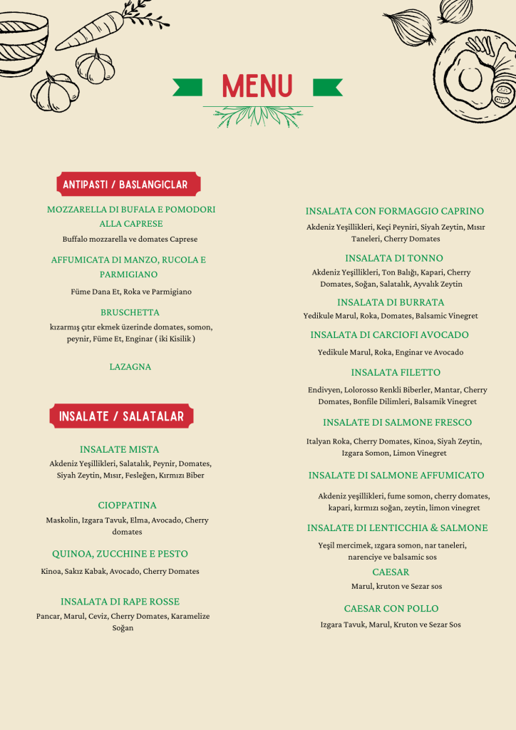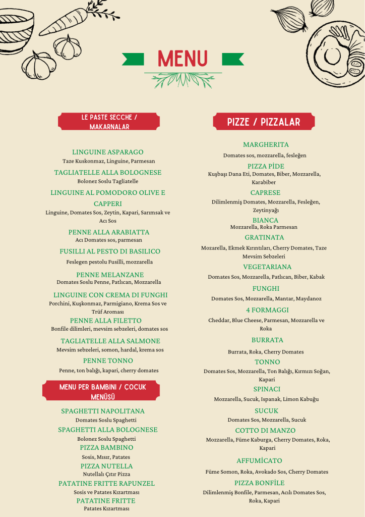Özenle seçilmiş malzemeler, geleneksel tarifler ve ustalıkla hazırlanan yemekler… Gerçek İtalyan mutfağının en özel tatlarını keşfetmeye davetlisiniz! 🇮🇹🍕🍝✨